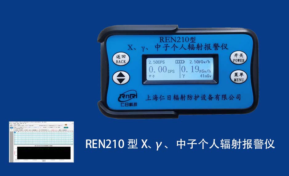 REN210 個人計量報警儀REN210型X、γ、中子個人輻射報警儀內置SiPM和鋰玻璃晶體組成中子探測器儀器,采用反照率方式探測中子射線,同時也能探測X、γ射線。因此它可同事監檢測X、γ、中子三種射線。能顯示工作場所的劑量當量率和累積劑量,更換電池時,日期及累積數據能永久保存。可選配RenRiPersonal個人劑量管理軟件,該軟件可存儲多個人的歷史數據,能記錄日累積、月累積、年累積、輻照時長、計算平均劑量率、扣除或不扣除本底輻射,且以文字和圖譜的方式展現數據。廣泛應用于環保、化工、水泥、煤礦、土木工程、石油、醫院、疾控、進出口商檢、核電、加速器、機場、中子源庫和其他安檢、邊境控制海關檢測等領域中的工作人員進行個人安全防護監測及放射性提示。